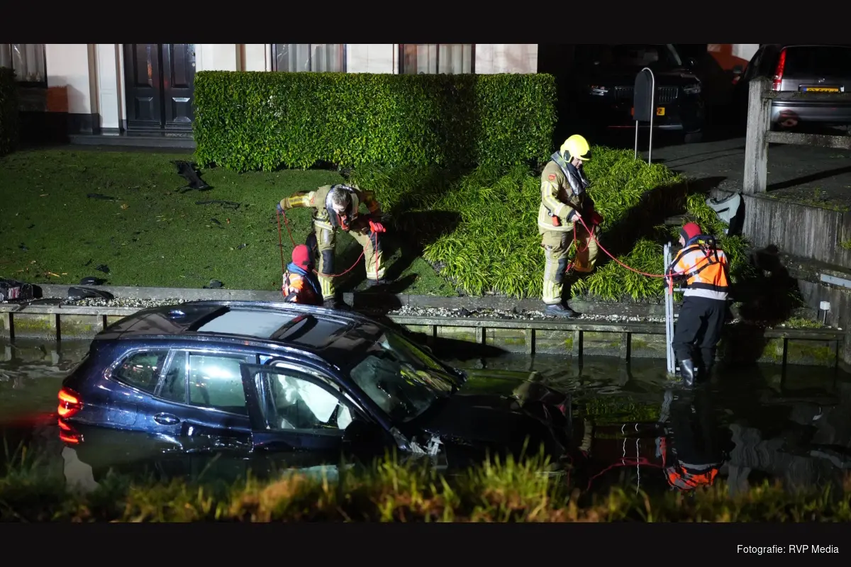 Een automobilist kwam door nog onbekende oorzaak rechts van de weg in de berm terecht. De bestuurder wist vervolgens tegen te sturen waarna die een brugleuning ramde en daarna twintig meter verderop de beschoeiing ramde aan de andere kant van een sloot. Het voertuig kwam uiteindelijk in het water tot stilstand.