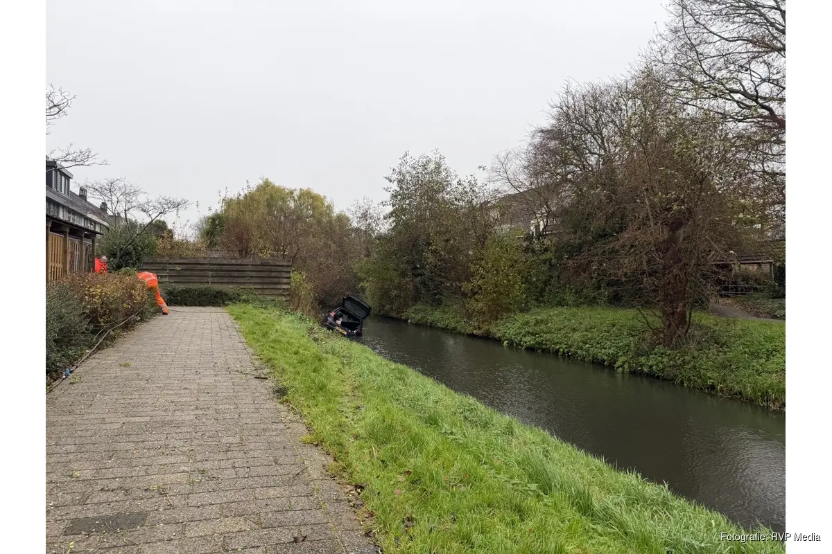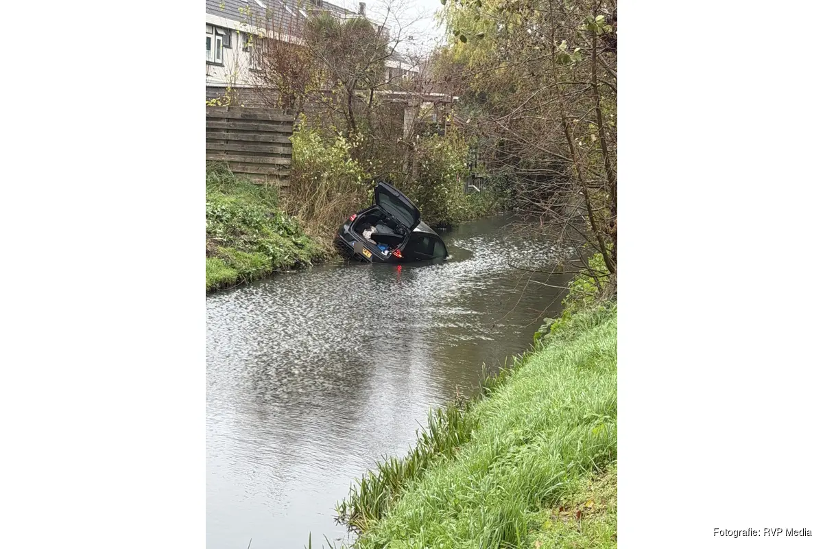 ZWAAG - Een auto is donderdagmiddag in een sloot gereden in Zwaag nadat hij met hoge snelheid door een drempel was gelanceerd. De bestuurder is aangehouden.