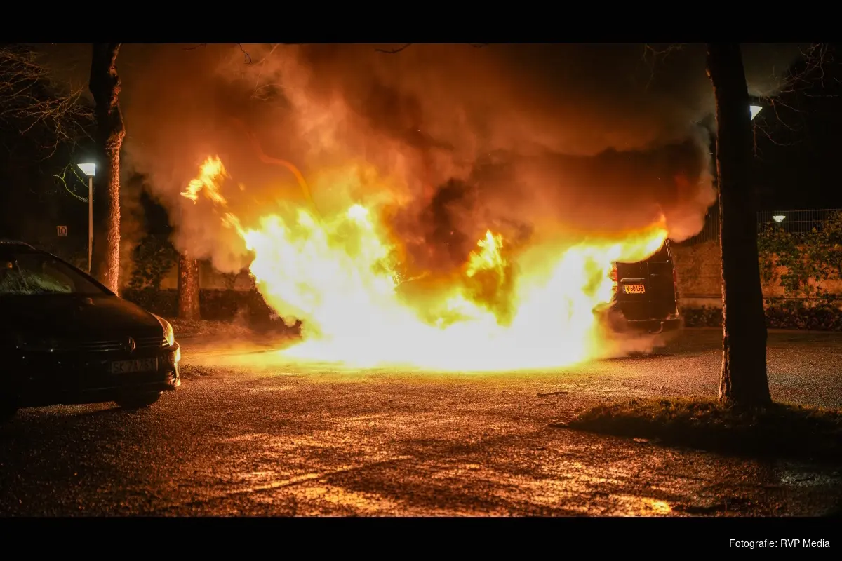Bij aankomst van de brandweer bleek er een bestelbus volledig in lichterlaaie te staan op een grote parkeerplaats. Bij de brand waren meerdere explosies te horen, deze waren vermoedelijk afkomstig van de banden die ontploften.