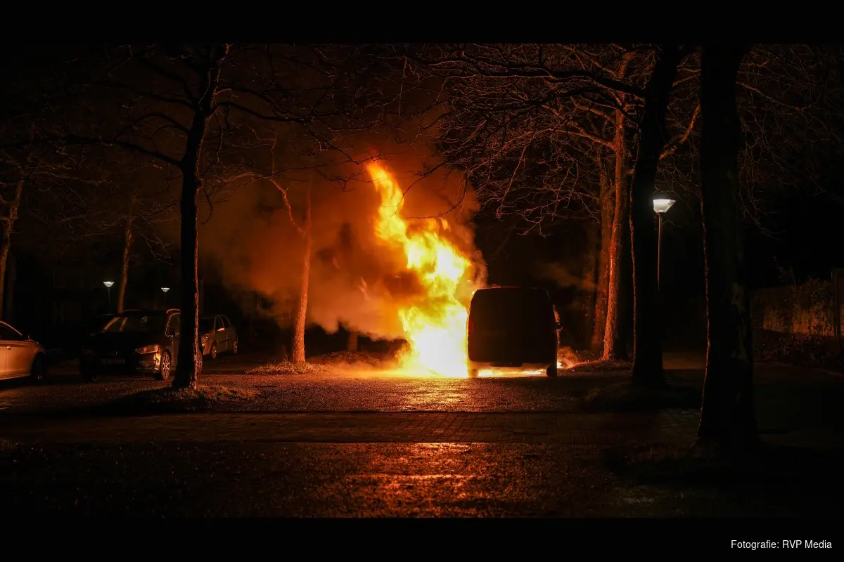 De bestelbus kan door de brand als verloren worden beschouwd. De politie heeft de brand in onderzoek en sluit brandstichting niet uit.