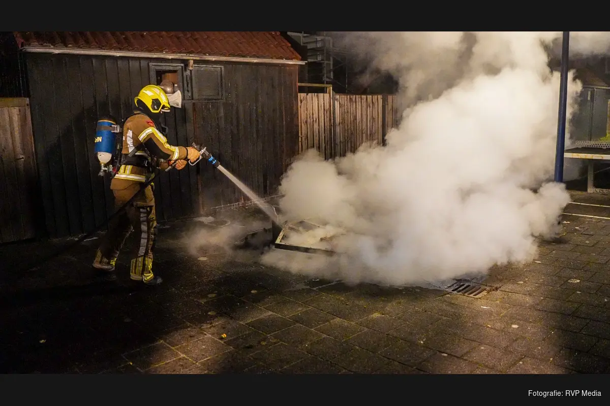 Bij aankomst van de brandweer bleek er een tafeltennistafel volledig in lichterlaaie te staan. De brand werd ontdekt door buurtbewoners die een flinke gloed buiten zagen en meteen 112 belde.
