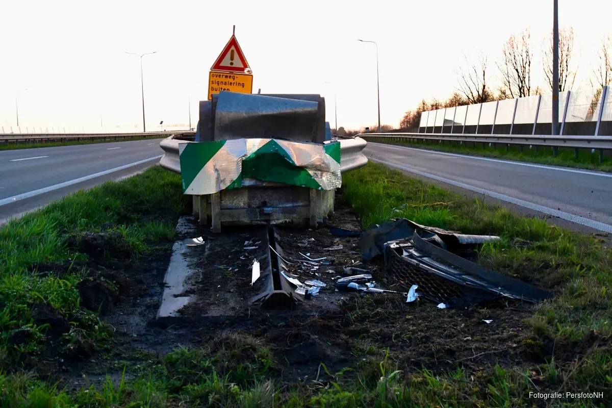 Daar bleek een een auto op een punt van een geleider langs de weg te zijn gebotst. De bestuurder is gecontroleerd door het ambulancepersoneel, maar hoefde niet naar het ziekenhuis.