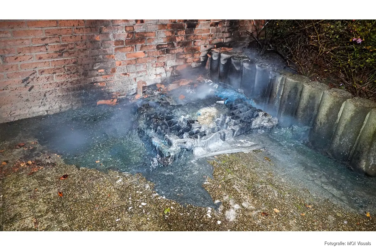 Omstanders hadden met behulp van emmers water en de politie met handblussers de brand al zo goed als uit. Wel is er veel schade aan de gevel van de woning, een groot deel is zwartgeblakerd en stenen liggen los.