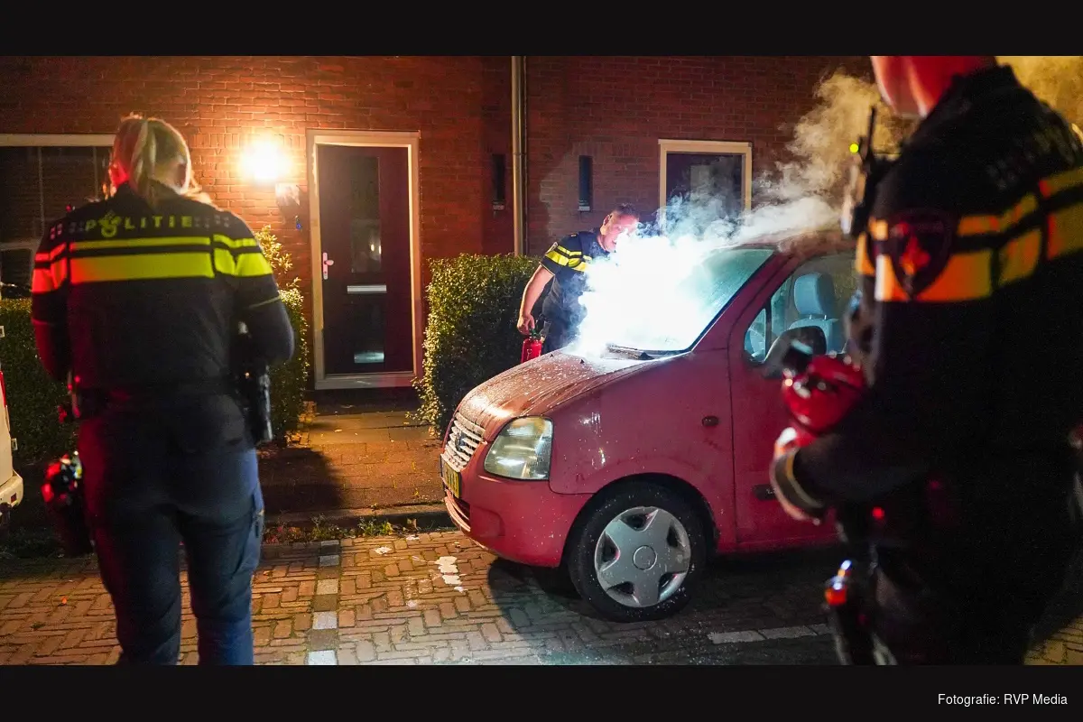 De politie welke als eerste ter plaatse was trof in de straat een beginnende autobrand aan. De auto bleek te branden nabij het voorraam en onder de motorkap. Omdat de politie wilde voorkomen dat de auto volledig in brand zou vliegen twijfelde men geen moment en pakte een brandblusser waarna ze de brand wisten te blussen.