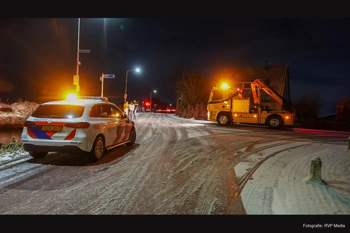 BERKHOUT - De bestuurder van een auto is zaterdagavond door gladheid in het water belandt langs de Bobeldijk in Berkhout.
