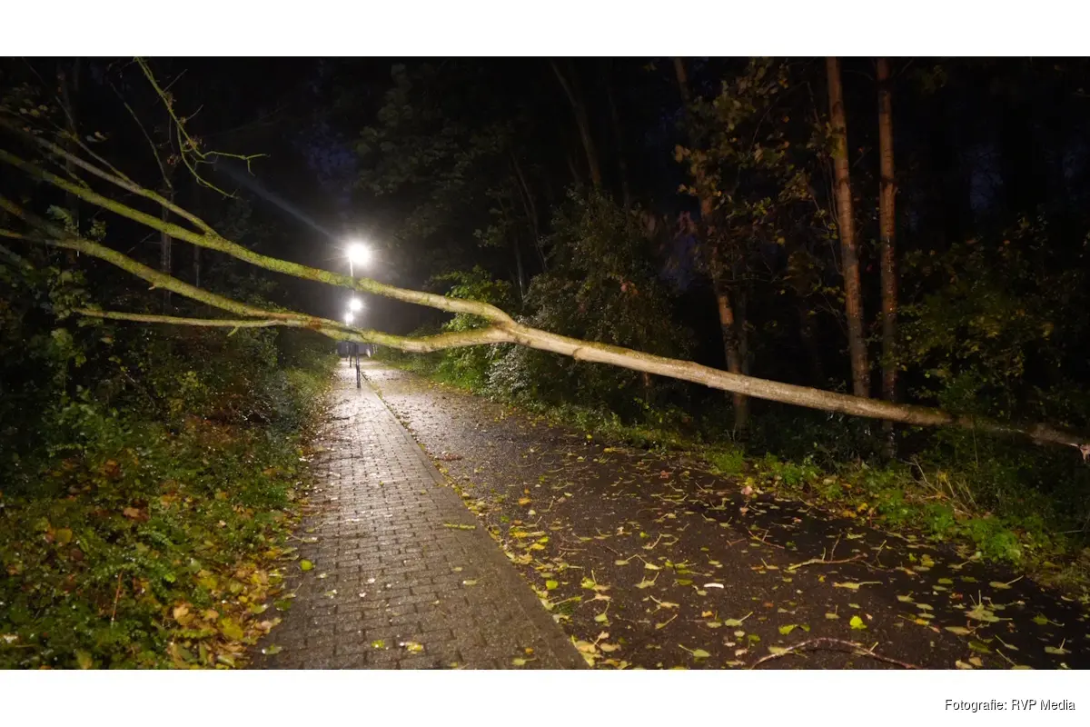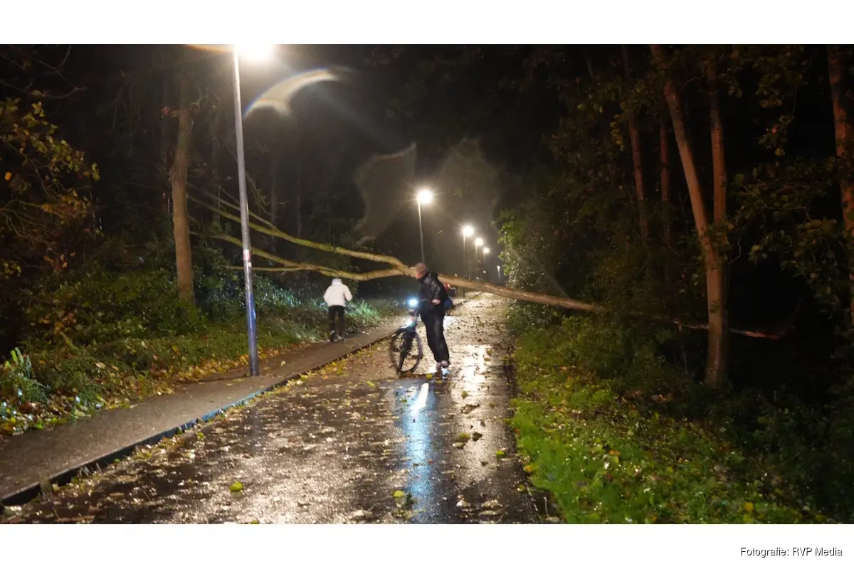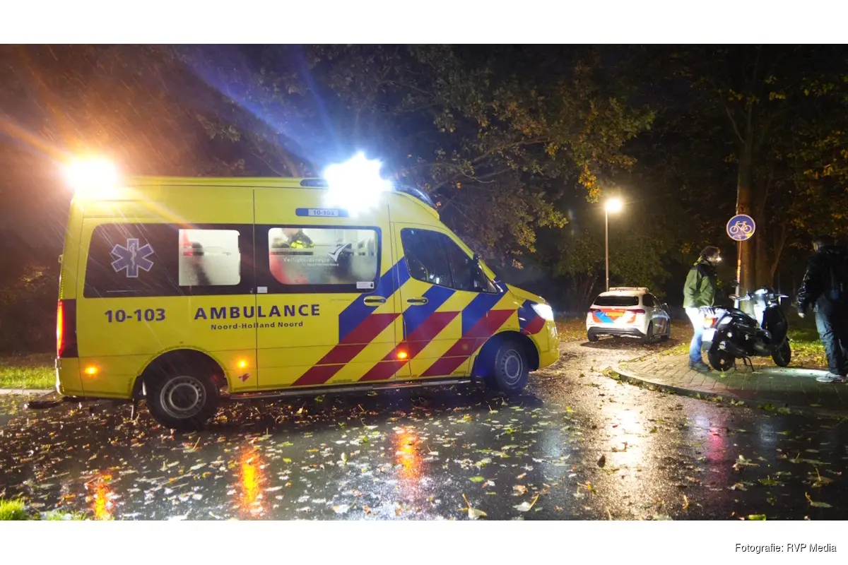 Een scooterrijder reed vanaf bedrijventerrein Hoorn 80 richting de wijk Kersenboogerd over het fietspad toen de man door het slechte weer een omgevallen boom niet zag waarna hij er met zijn scooter tegen aan reed.
