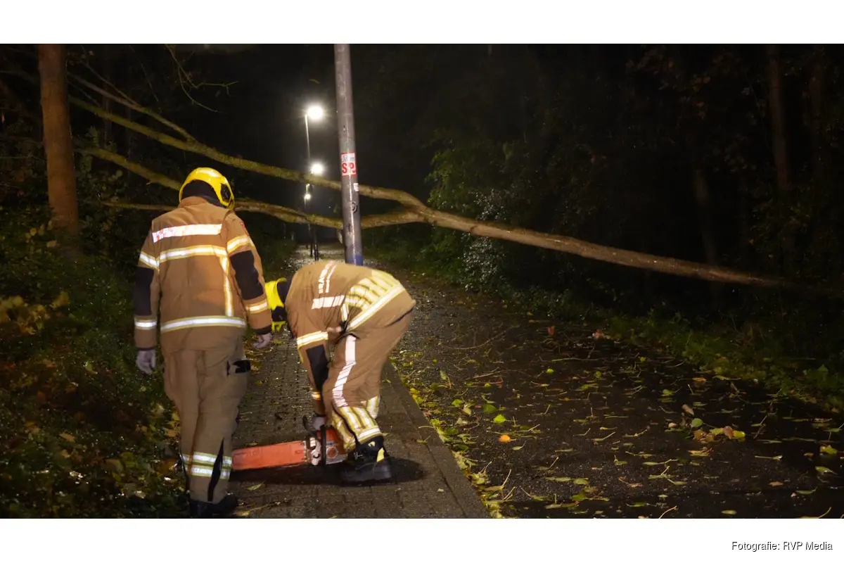 De brandweer heeft de omgevallen boom doormiddel van een kettingzaag weg gehaald.