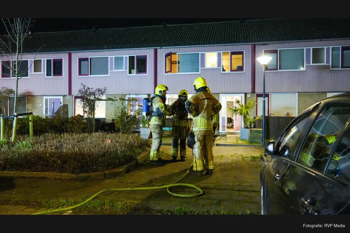 Bij aankomst van de brandweer bleek er een flinke laag rook in de woning te hangen. De brand bleek te woeden op de begane grond van de woning.