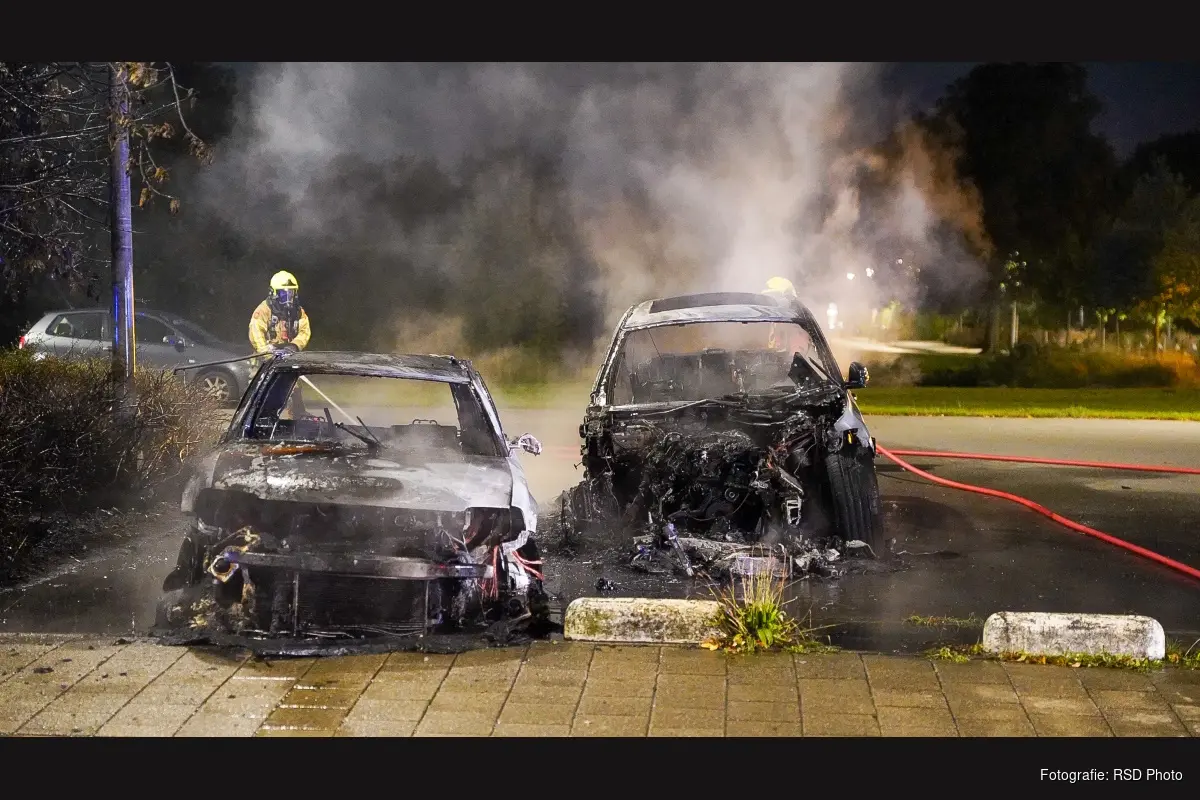 De politie heeft de brand in onderzoek en sluit brandstichting niet uit. De Forensische onderzoekers zullen donderdagochtend onderzoek gaan doen naar de uitgebrande wrakken.
