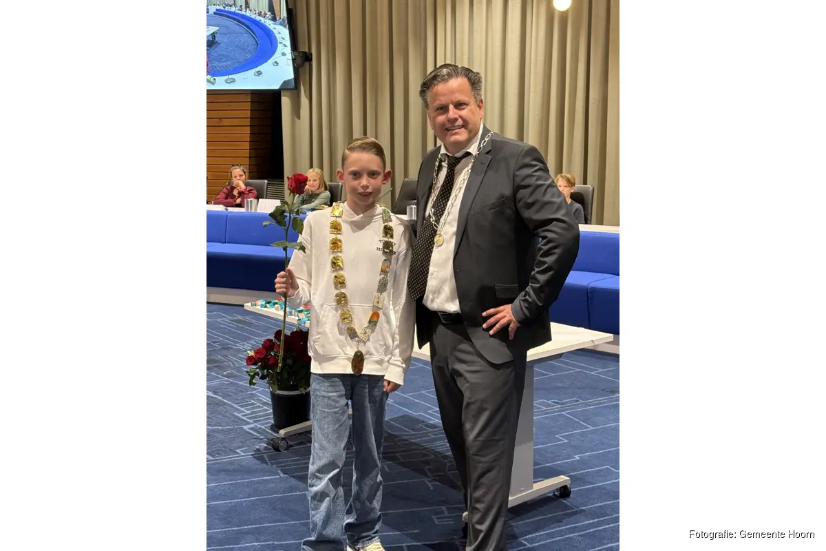 Wethouder en locoburgemeester René Assendelft, ooit leraar geweest en nu onder andere verantwoordelijk voor de portefeuille onderwijs, mocht de installatie voorzitten. Hij kroonde Dex Paauw tot de nieuwe burgemeester van Hoorn en gaf hem zijn ambtsketen. Alle kindergemeenteraadsleden ontvingen een speld. De ambtsketen en spelden zijn gemaakt door kinderen uit de stad bij Kunstkantoor Bild.