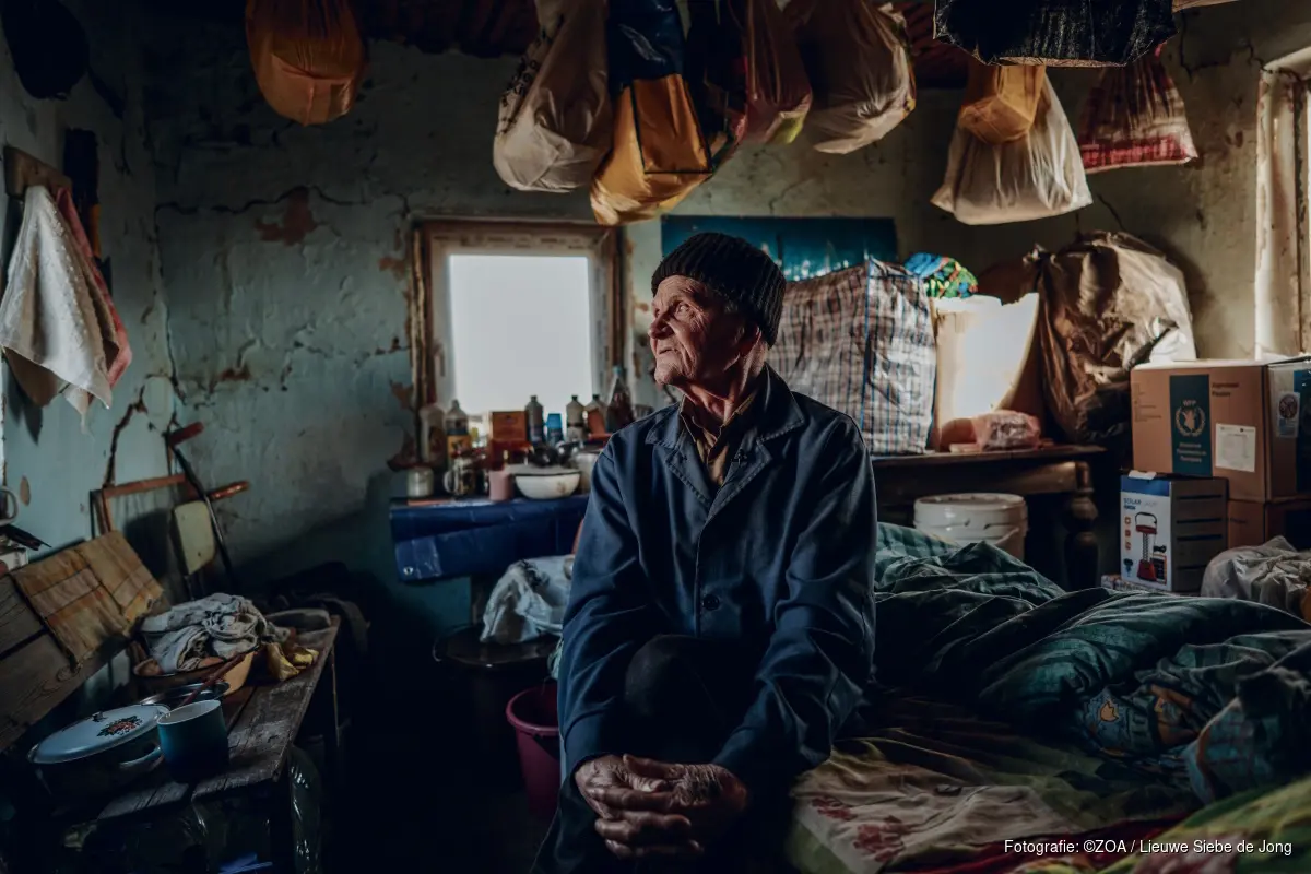 Medewerkers van noodhulporganisatie ZOA bezoeken mensen zoals Viktor, om te kijken hoe ze kunnen helpen bij het repareren van hun huis. “We zijn er voor mensen die alles zijn kwijtgeraakt door een oorlog of een ramp. Ze staan er niet alleen voor in hun nood”, zegt Edwin Visser, directeur programma’s van ZOA.