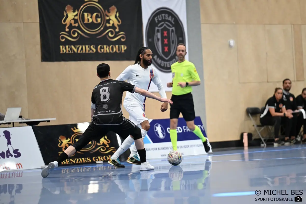AMSTERDAM - HV Hoorn heeft een punt overgehouden aan een knotsgek duel tegen Futsal Amsterdam. De ploeg van Khalid Elbaz keek na tien minuten al tegen een 4-0 achterstand aan, maar sleepte op karakter een remise uit het vuur: 6-6.