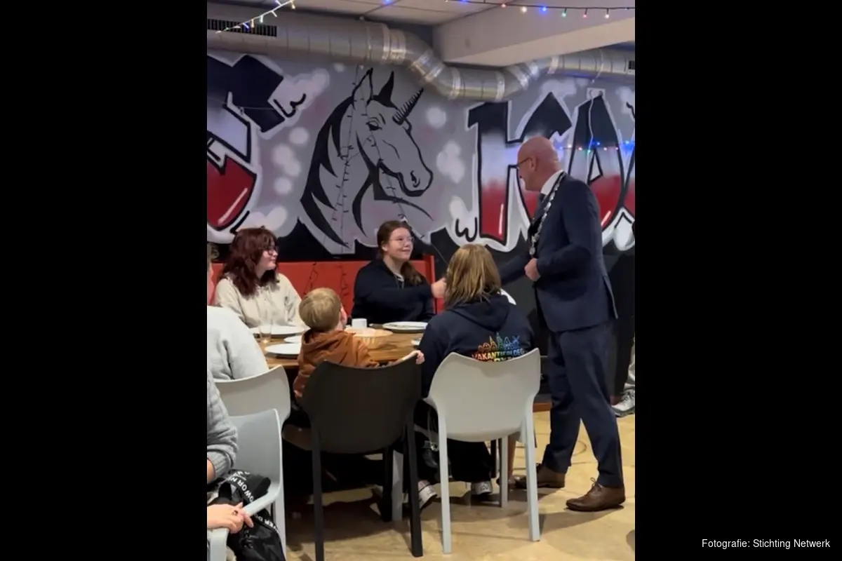 HOORN - De jongeren van De Vakantieploeg keken afgelopen woensdag 7 januari even vreemd op toen burgemeester Jan Nieuwenburg onverwacht jongerencentrum De Cogge binnenstapte. De burgemeester kwam langs bij de feestelijke afsluiting van het project en verraste daarmee de 12 deelnemende jongeren, hun ouders en de jongerenwerkers. De jongeren wisten van niets en reageerden zichtbaar verbaasd en sprakeloos op de ‘special guest’.