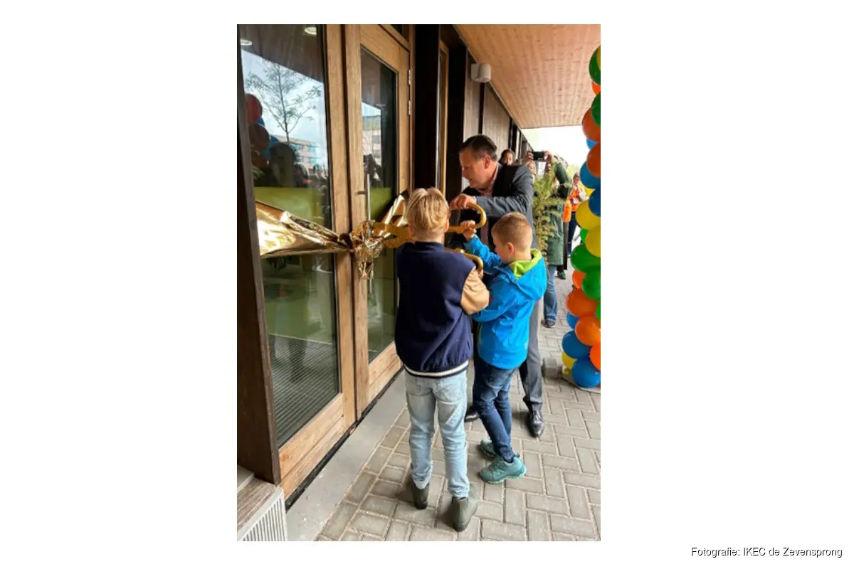 HOORN - Vrijdag 10 oktober is het nieuwe Integraal Kind- en Expertise Centrum (IKEC) de Zevensprong feestelijk geopend. Het gebouw brengt vijf locaties voor speciaal (basis)onderwijs samen in één toekomstgerichte leeromgeving voor kinderen van 0 tot 12 jaar. Samen met de wethouder knipten de kinderen een gouden lint door, waarmee de opening op vrolijke wijze is gevierd.