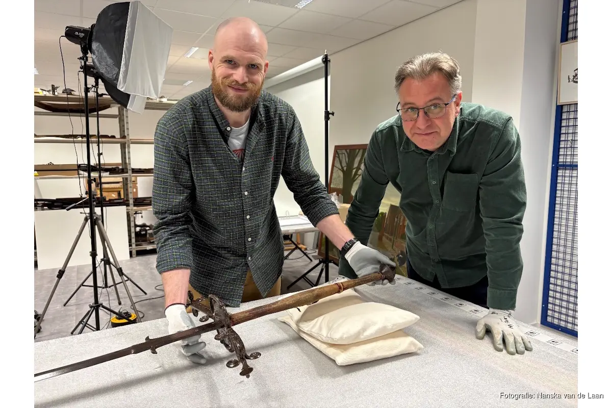 HOORN - Tijdens de sluiting van het Westfries Museum vanwege de verbouwing en vernieuwing, gaat in het depot de herwaardering van de collectie gewoon door. Zo vond eind februari een bijzonder onderzoek plaats naar twee zeldzame slagzwaarden. Conservatoren Jeroen Punt en Casper van Dijk van het Nationaal Militair Museum (NMM) bestudeerden de herkomst, het gebruik en het waardevolle karakter van deze wapens. Mogelijk hebben zij een link met de Graaf van Bossu, de verslagen aanvoerder van de Spaanse vloot tijdens de Slag op de Zuiderzee in 1573.