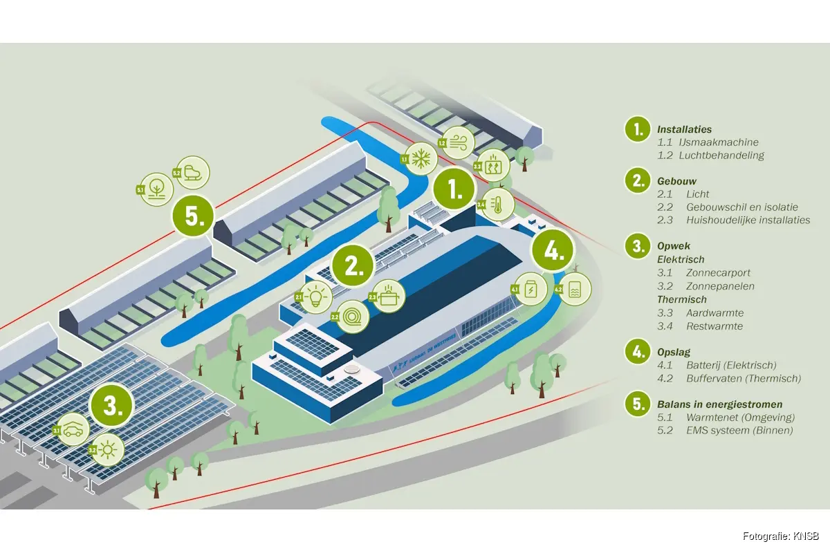 Scenario 3: verduurzamen, uitbreiden en energie delen — Het meest uitgebreide scenario, waarin je ook de directe omgeving betrekt bij het delen van de energie. Alle warmte die vrijkomt bij het koelen van de ijsvloer, wordt hiermee uitgewisseld met de directe omgeving. De ijsbaan wordt daarmee een energieknooppunt in de wijk.